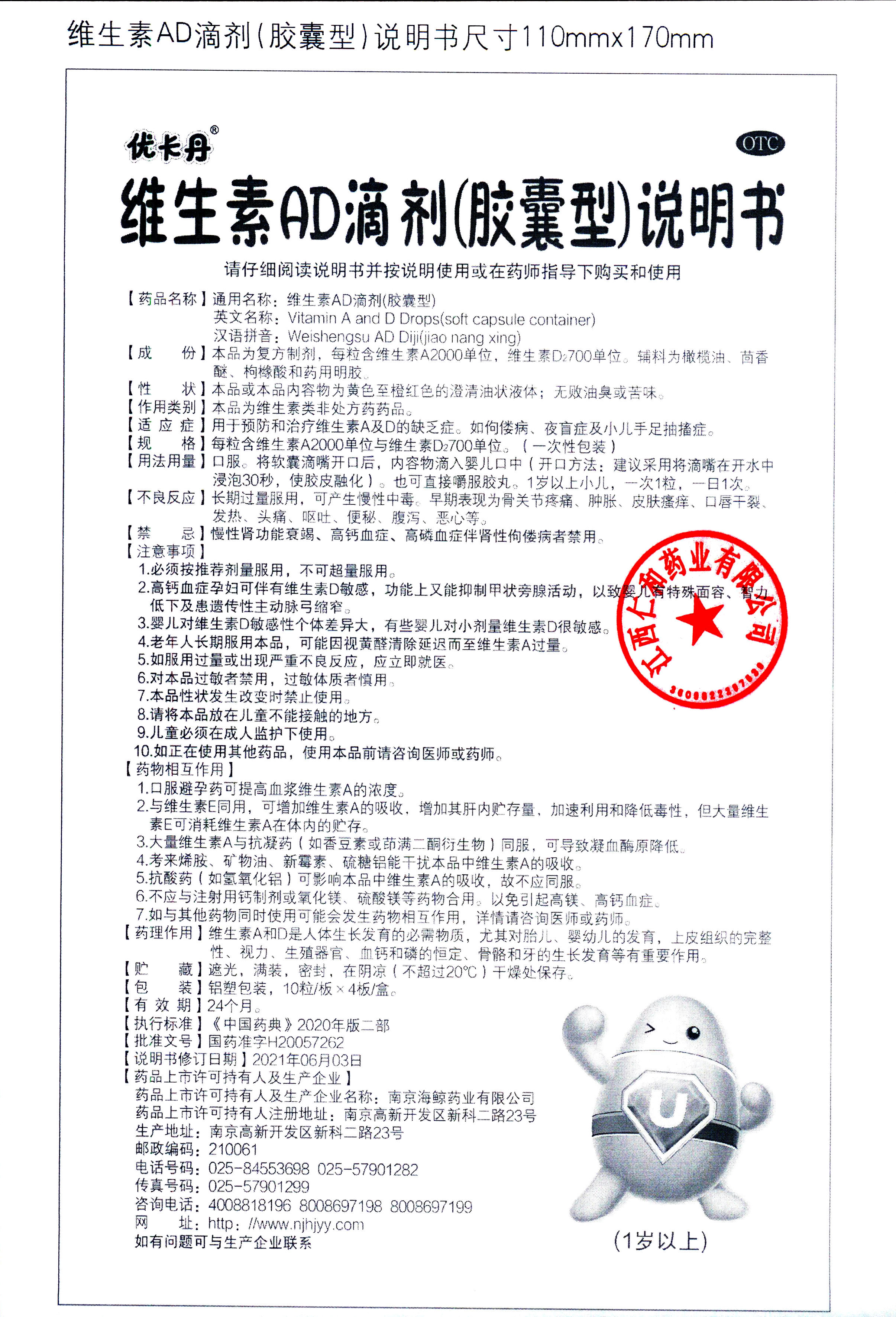 【主要成份】本品为复方制剂,每粒含维生素A2000单位,维生素D2700单位。辅料为精制植物油,茴香醚,枸橼酸和药用明胶。
