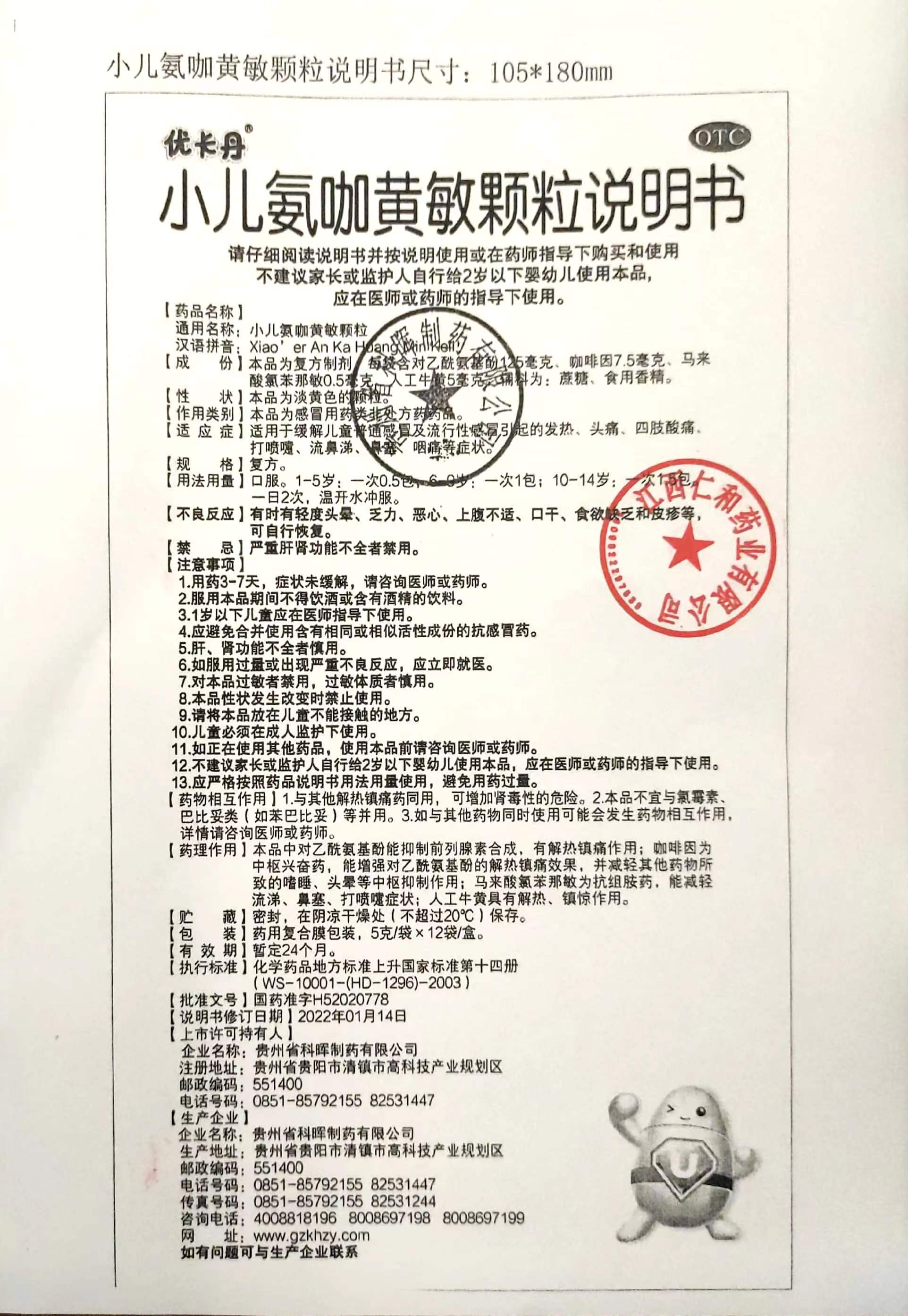【主要成份】本品为复方制剂,每袋含对乙酰氨基酚125毫克,咖啡因7.5毫克,马来酸氯苯那敏0.5毫克,人工牛黄5毫克。