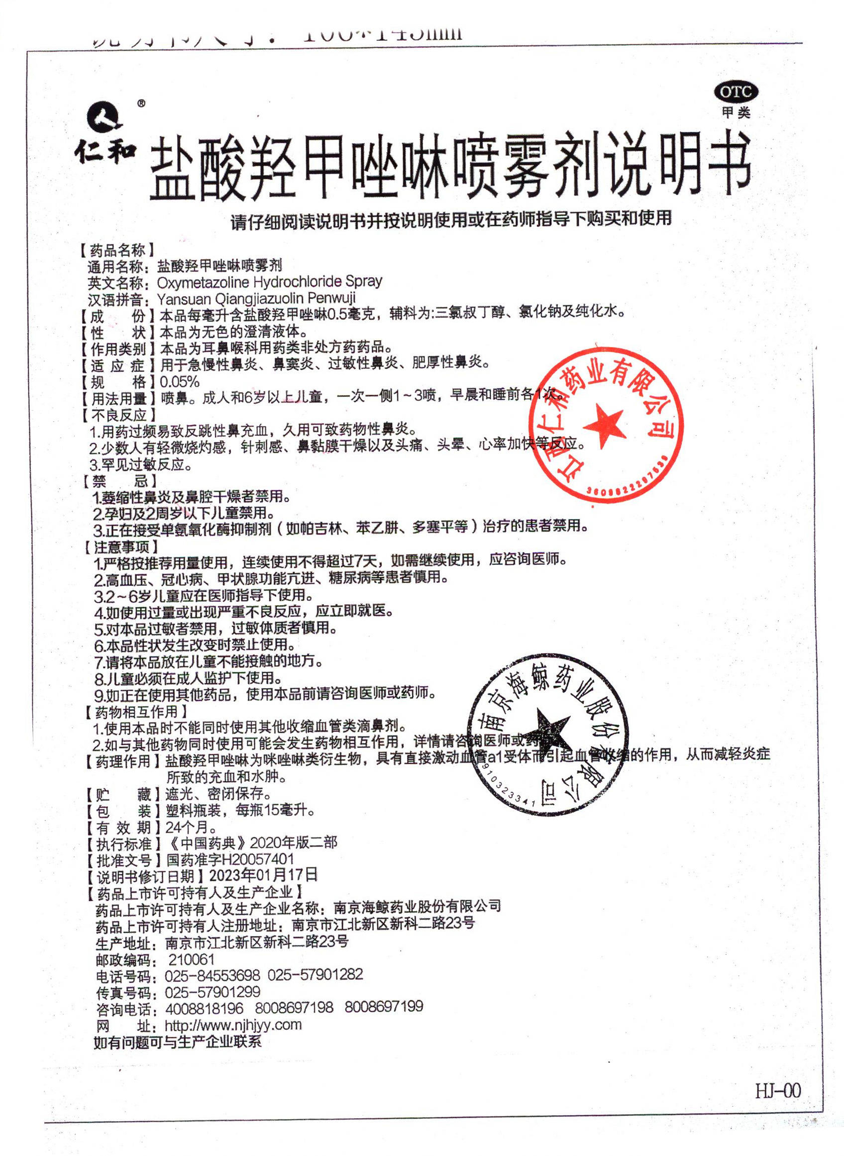 【用法用量】喷鼻。成人和6岁以上儿童,一次一侧1-3喷,早晨和睡前各1次。