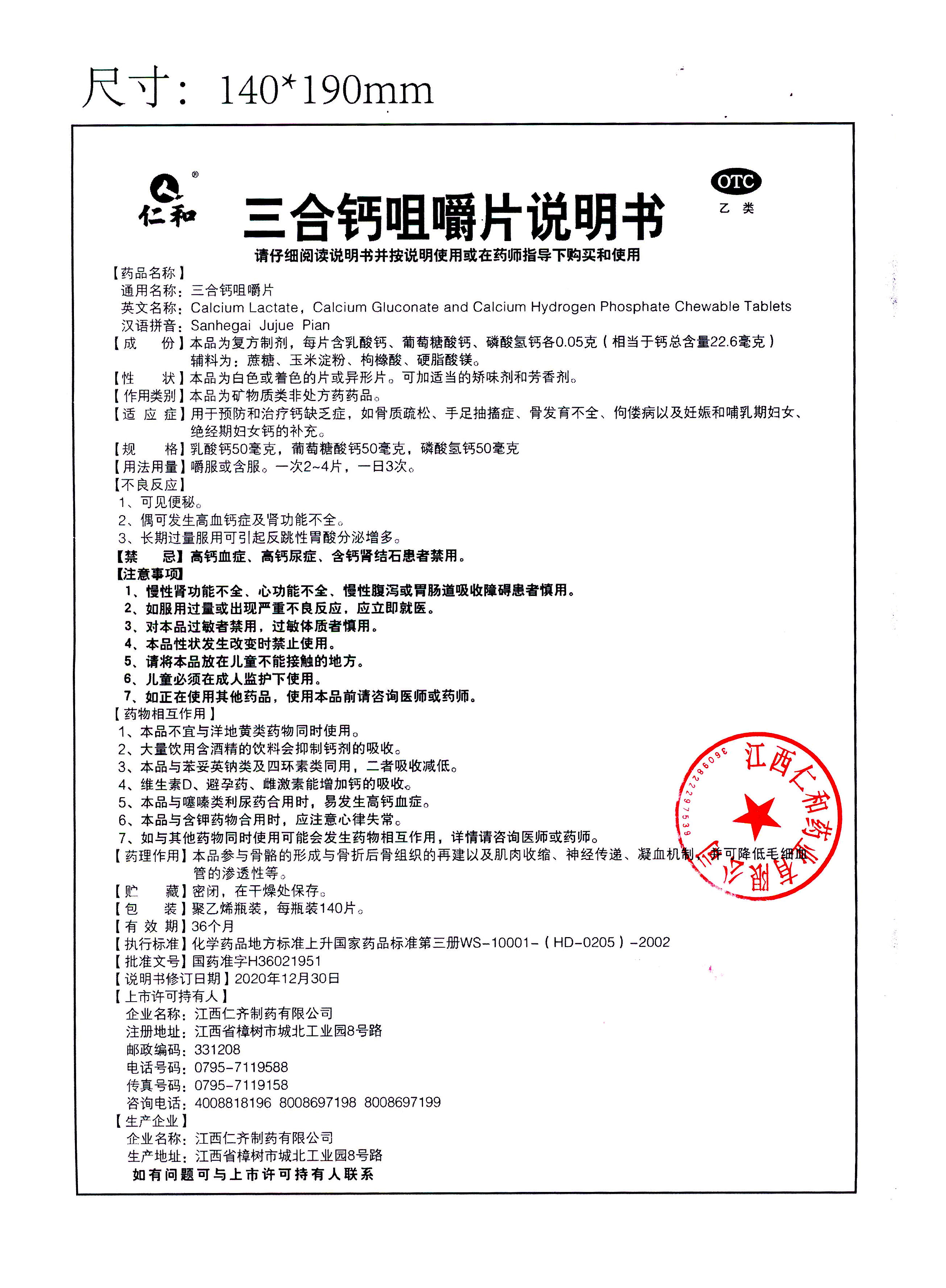三合钙咀嚼片