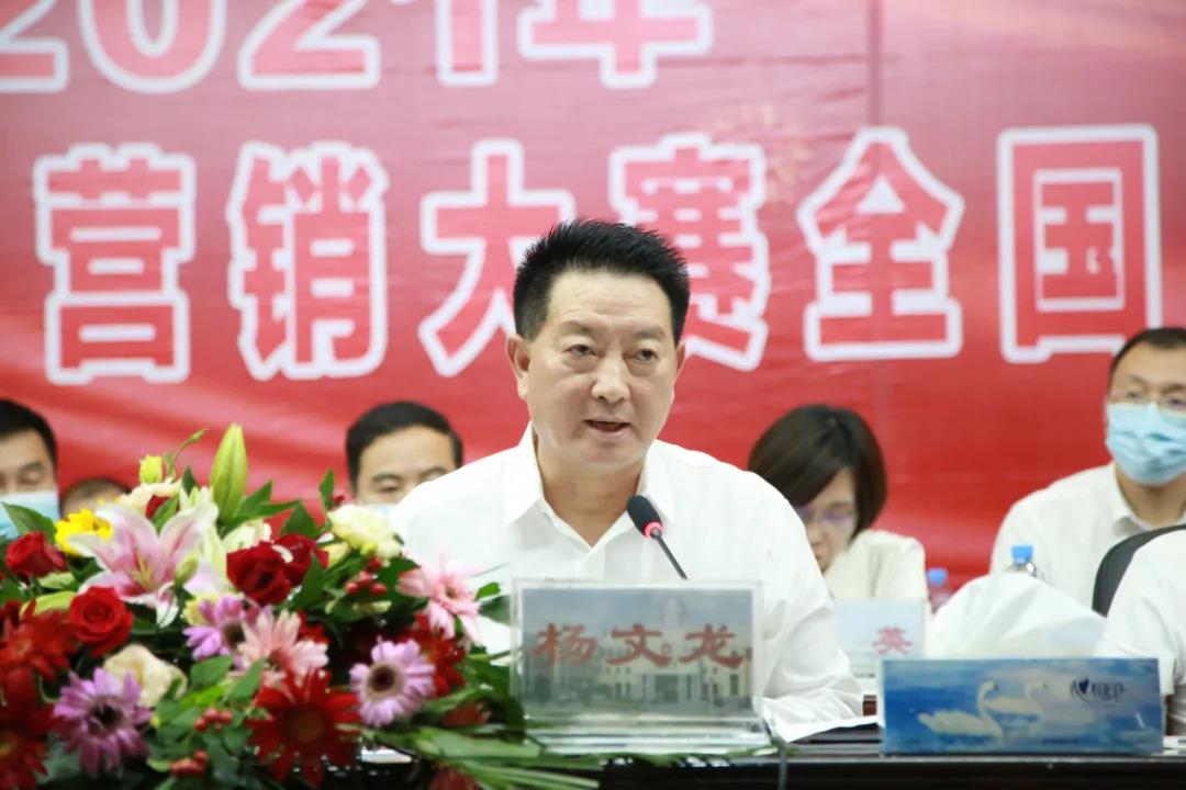 在热烈的掌声中,杨文龙董事长发表讲话。他向长期以来关心、支持、帮助仁和事业、叮当事业发展的樟树市委、市政府及各职能部门表示感谢!向奋战在营销一线的全体营销将士、向辛勤工作的工业战线及机关各条战线的全体同仁们表示亲切慰问!