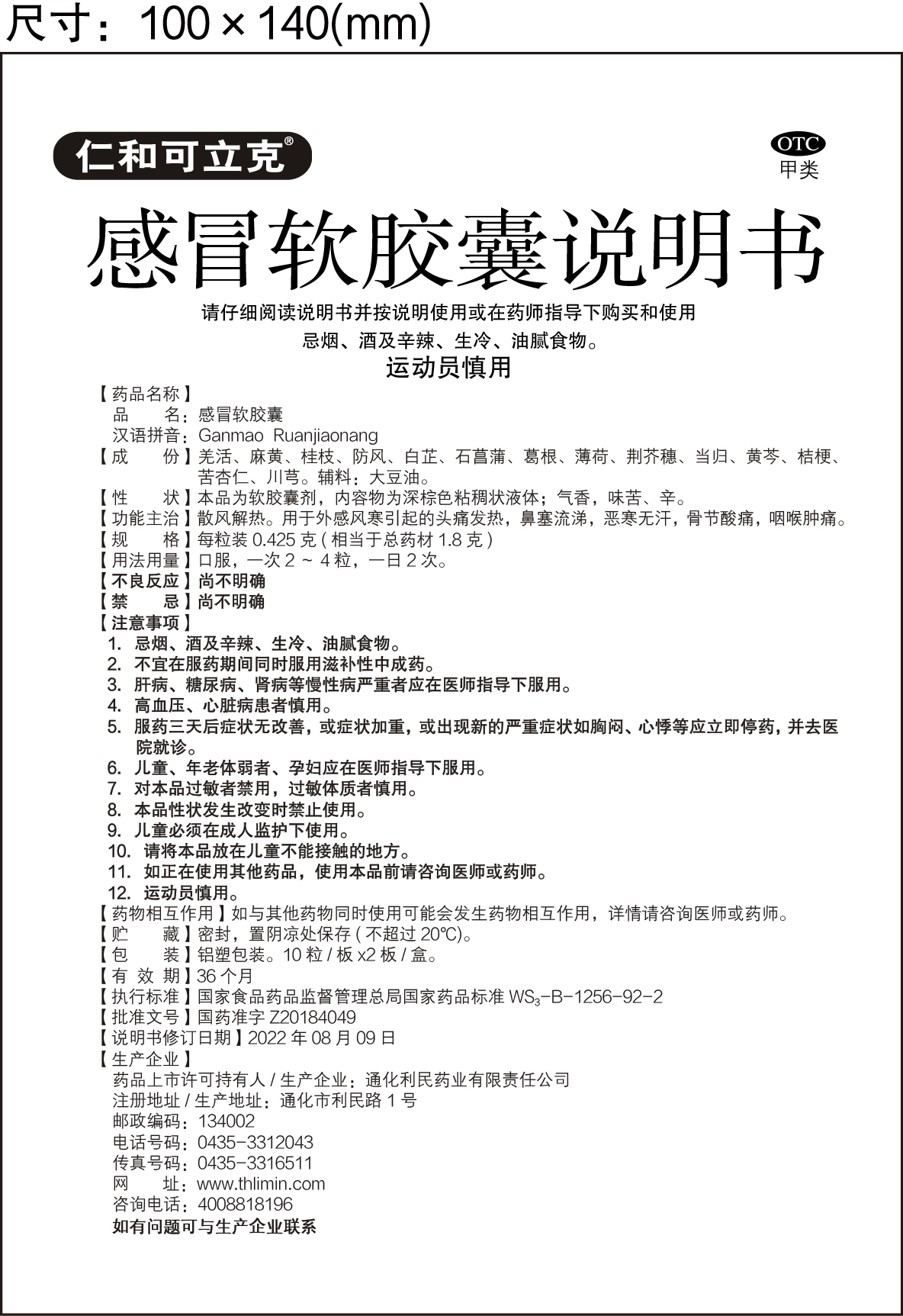 每粒装 0.425 克(相当于总药材 1.8克)