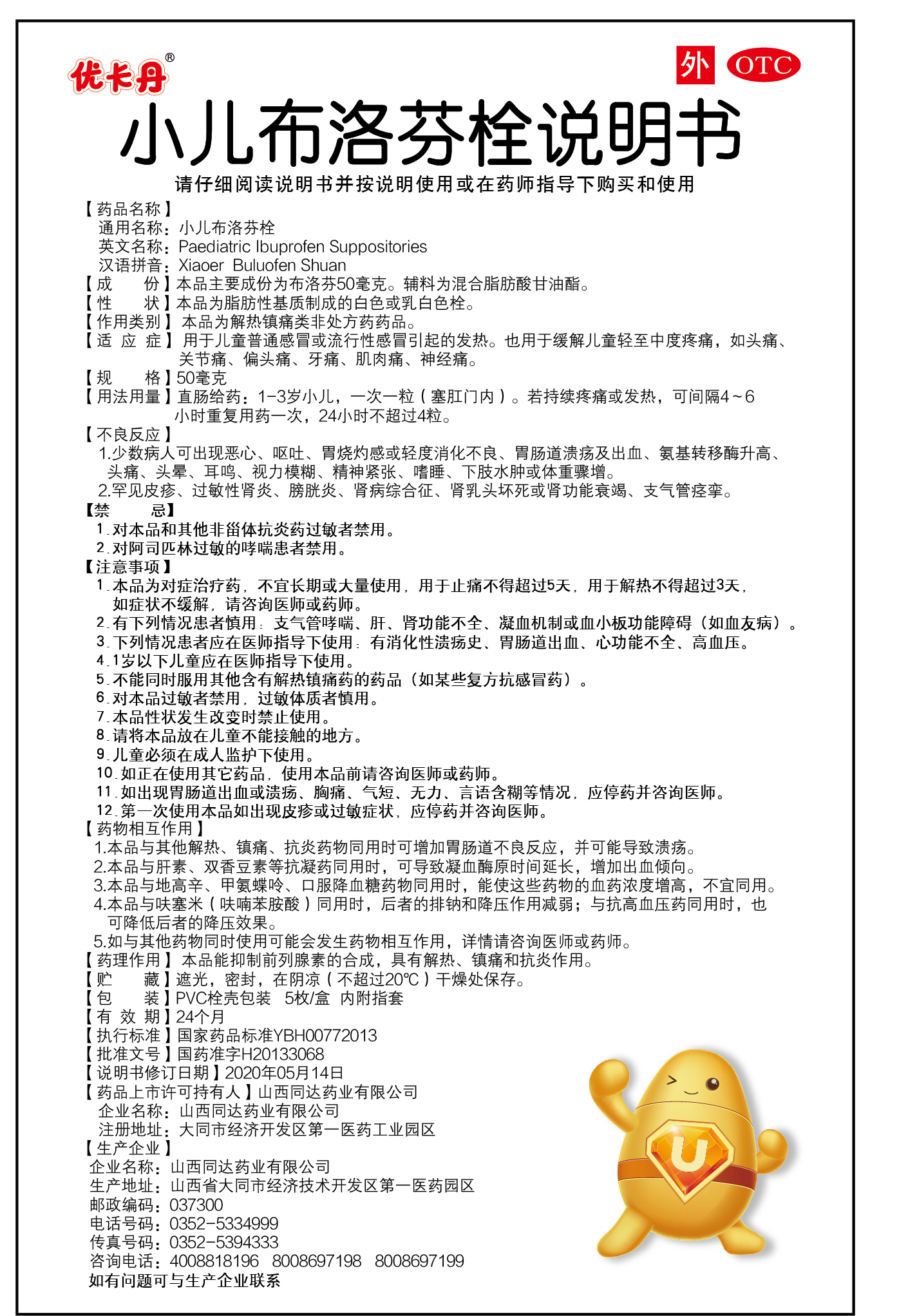 小儿布洛芬栓 编辑时间: 2025年04月02日 浏览量: 1,093 【适应症】用于儿童普通感冒或流行性感冒引起的发热。也用于缓解儿童轻至中度疼痛,如头痛关节痛、偏头痛、牙痛、肌肉痛、神经痛。 下一产品:罗红霉素颗粒上一产品:硫酸锌糖浆